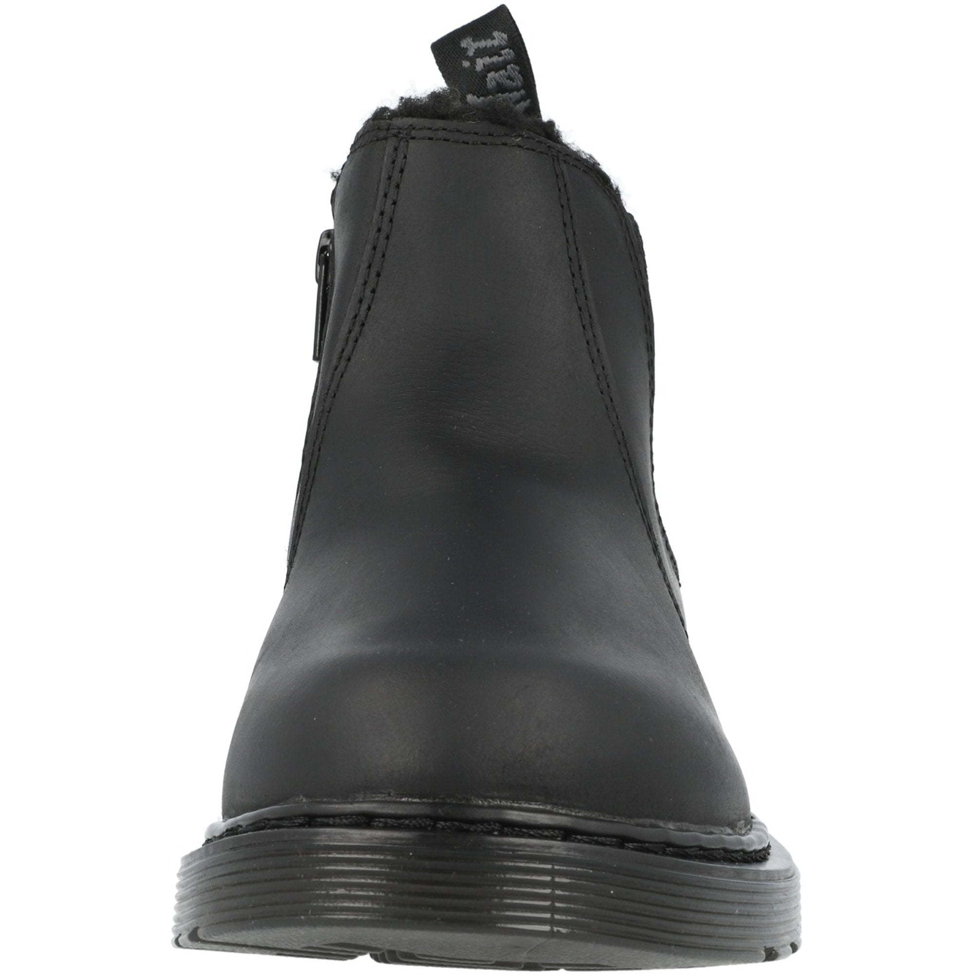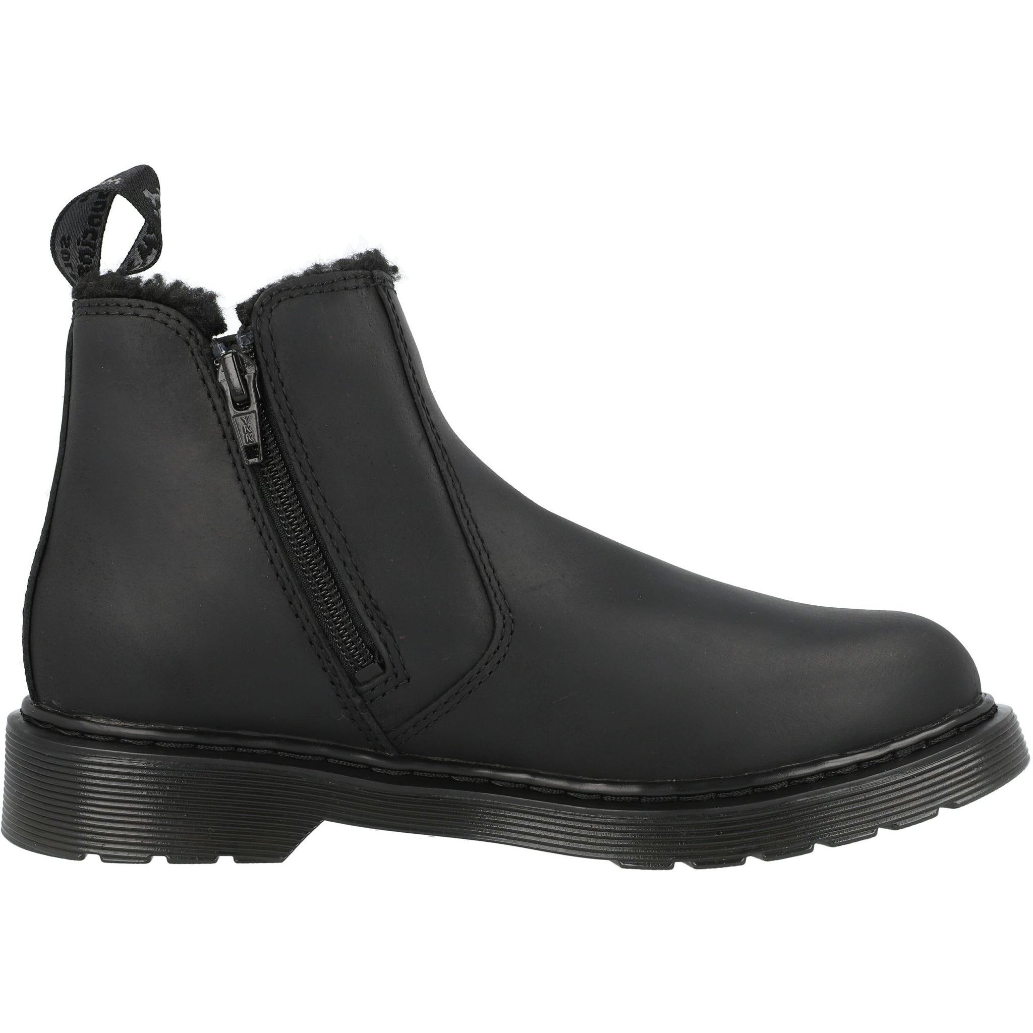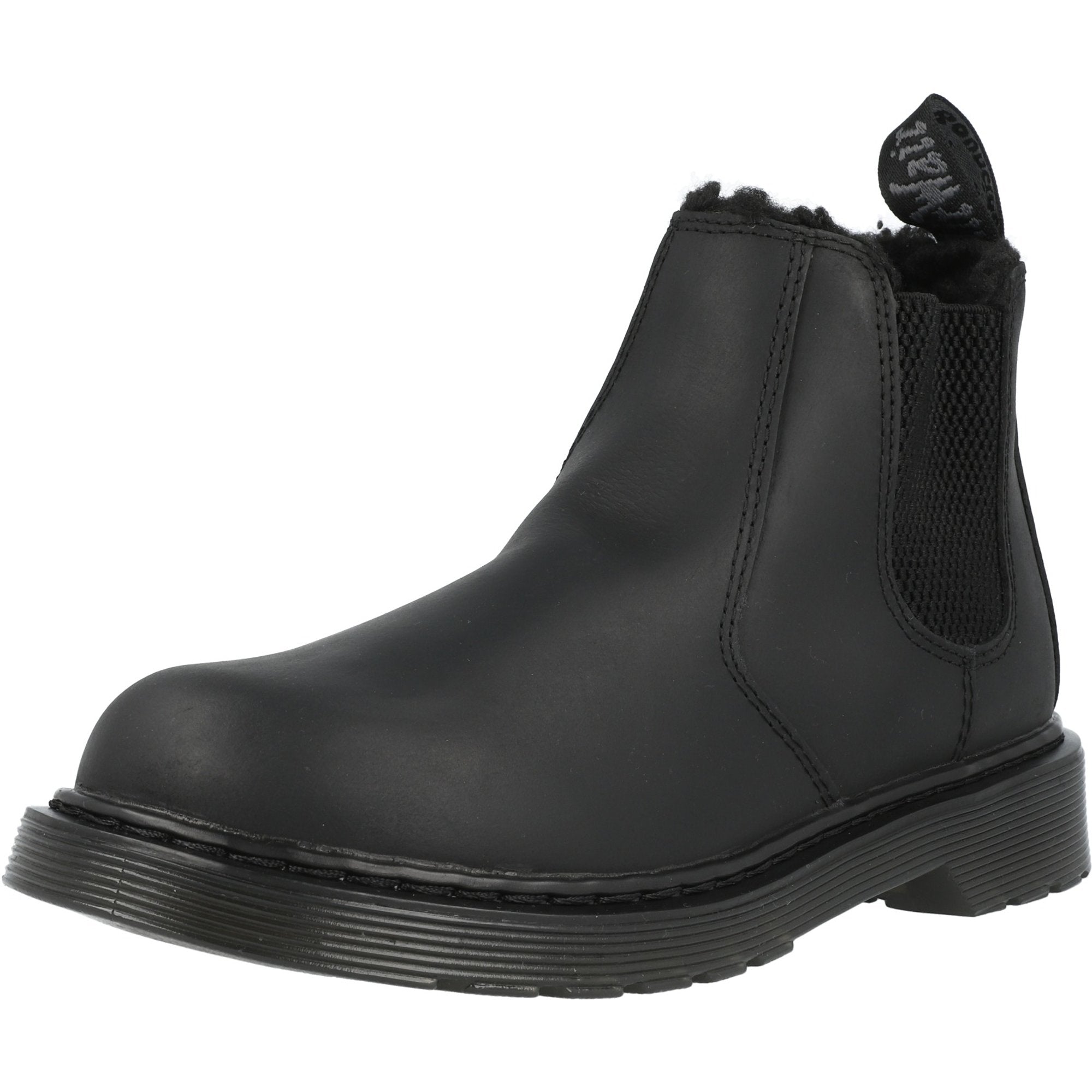 Keep your little rebel's feet warm and dry with Dr Martens 2976 Leonore Mono Black Boots. Made from durable waxy leather and lined with cosy Sherpa faux fur, they combine timeless Chelsea boot style with ruggedness. Whether it's a drizzly stroll or a windswept playground, these boots rise to the occasion.