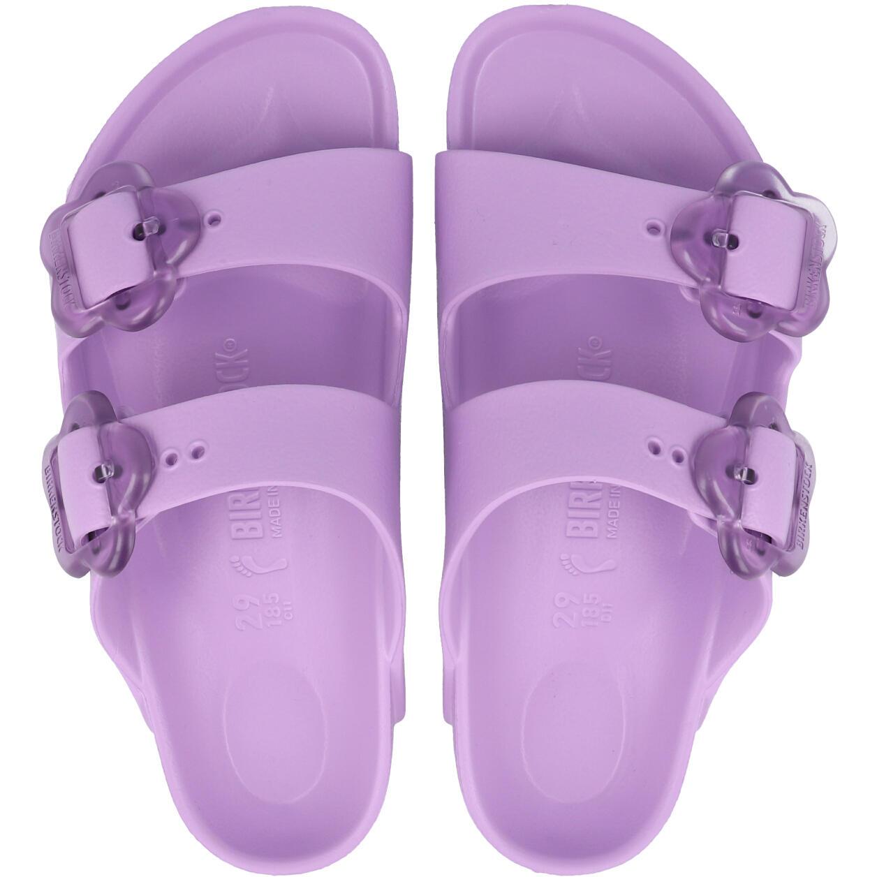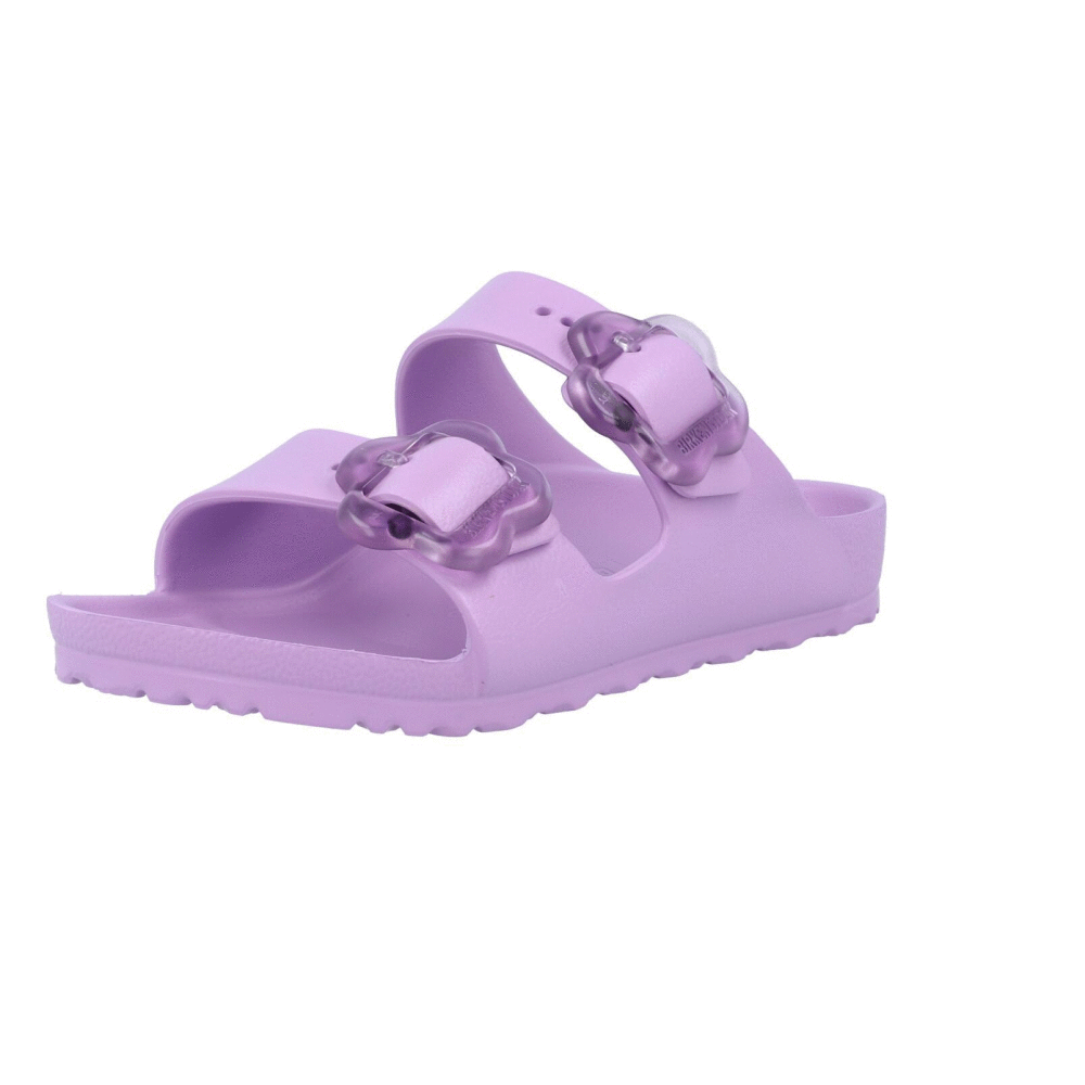 Discover the joy of play with the Birkenstock Arizona Flower Kids EVA Crocus. Perfect for little adventurers, these sandals feature a charming floral buckle and a flexible, lightweight EVA construction. Ideal for splashing at the beach or running wild on the playground, they're water-resistant and washable, ensuring durability every step of the way.